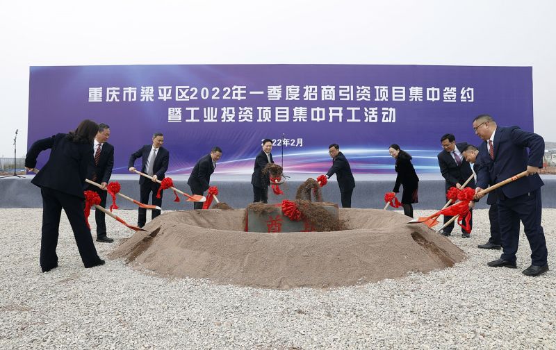 (2月25日,重慶市梁平區(qū)2022年一季度招商引資項(xiàng)目集中簽約暨工業(yè)投資項(xiàng)目集中開(kāi)工活動(dòng)現(xiàn)場(chǎng),奠基培土儀式)