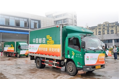 11月21日,中國郵政梁平分公司郵件處理中心,裝滿預制菜的貨車準備發(fā)車。